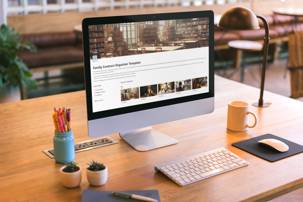 This template allows you to manage your family’s contract across different categories in a smart and beautiful way. You can add all your contracts and then tag them to topics like healthcare, savings, or anything you want.